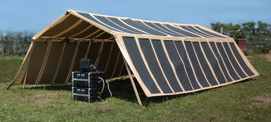 The new Solar Power Shelters offer up to 1440 watts of solar power for each 10' x 20' shelter section. This solar covering also serves to further insulate the shelter, thereby reducing power required for heating/cooling. Tactical Solar®Panels